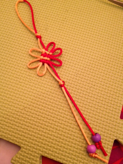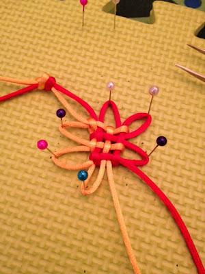 This morning I went to a Chinese knot class which was really fun and great to learn from a teacher rather than using Youtube videos and a Chinese book that I can't read! It took about 2 hours to tie this pan chang knot although I didn't get enough time to finish the 2nd knot but I hope to get some materials out here to try again.
