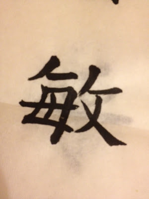 I then went to the study room and did some homework which works out better because I remember more from class being in a similar environment as opposed to my room where I'm easily distracted by having an internet connection! I then went to calligraphy class where my teacher helped me write my name in nice strokes ^^