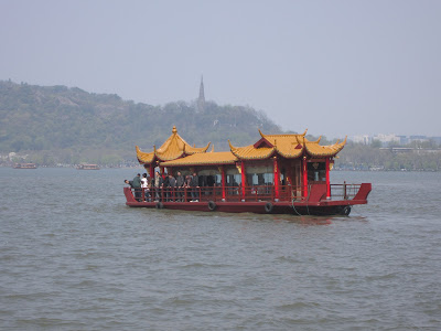 From the station we took the K7 bus to West Lake. The bus costs 1RMB and takes about 15-20 minutes to get to the lake. The lake is much bigger than it seemed and I'd read it would take 5 hours to slowly walk around it. There are some ferry boats that take people to the smaller islands in the middle of the lake which cost 45RMB for the day.