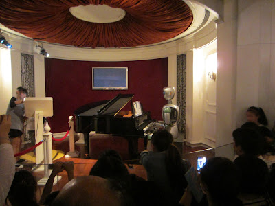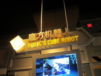 There was a rubiks cube solving robot which managed it in 2 minutes, a piano playing robot too. Also there was an area which was very interactive so you could (if there wasn't so many people!) play with exhibits.