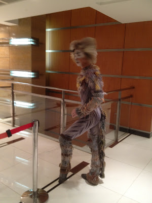 The show was entirely in Chinese with subtitles up in Chinese which was a real challenge. Also it was quite interactive with cats coming into the audience and even during the interval there were cats rolling around the floor of the theatre! It was hard to follow the musical but it was a good experience. It was annoying though that the couple sitting behind us decided to move in front of us as there were empty seats and then spend most of the time surfing the internet on the smartphone which was so distracting! I find it annoying when they can't spend a few hours to enjoy a show without the internet.