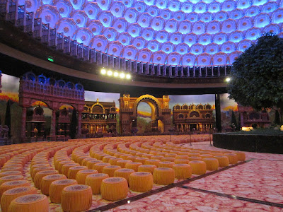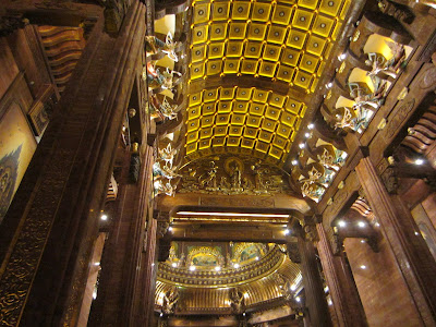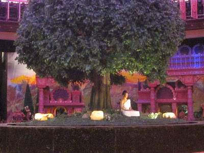 The next room was the music room which had a colour-changing ceiling as well. In the centre of the room was a huge display of Siddhartha meditating under the tree. The hall had many seats and beautiful paintings on the wall.