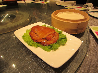 The restaurant was called Da Dong and most famous for Beijing duck. It was a huge restaurant and even the front entrance if you were waiting for a table you could have tea and even oysters! The duck was really good and presentation of food was amazing. Apart from having pancakes, there was another kind of bread (like pita) which were toasted and could be opened to fit the duck in. It was something different but I'd stick with pancakes! Also like many restaurants the pancakes got cold quick, unlike in Quanjuede where they have a special plate that keeps the pancakes moist and hot.