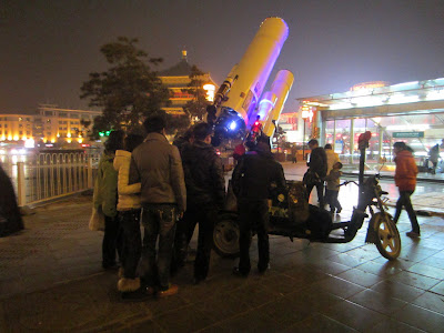 Man rides his bicycle with this giant telescope offering science lessons for 20RMB